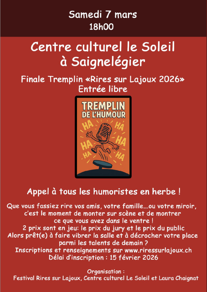 L’association « La Diva », le centre culturel Le Soleil et Laura Chaignat s’unissent pour organiser le 2ème tremplin Rires sur Lajoux